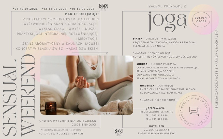 Jeżeli chciałbyś zarezerwować pobyt w Hotelu Ren w ramach jednego z pakietów skontaktuj się z nami!